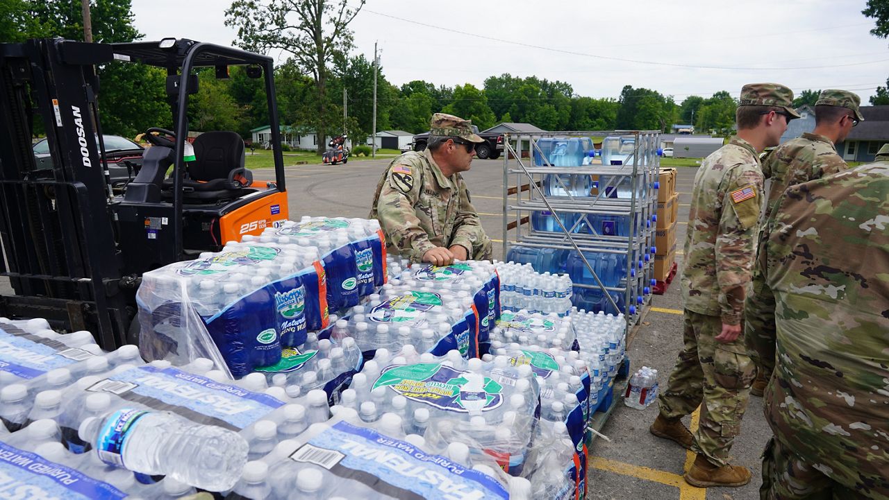 Before water gets scarce, residents of Marion have switched to bottled water delivered by the state and handed out by the National Guard.