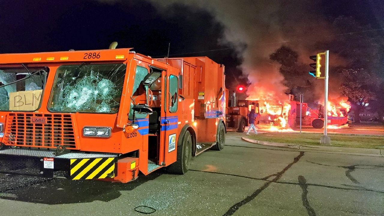 Multiple garbage trucks were set on fire; They were up in flames for at least an hour. Small flames were burning in front of the Kenosha County Courthouse as well.